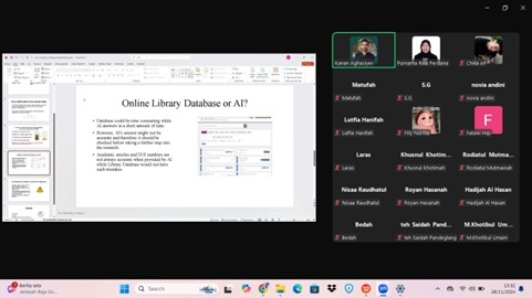 Kamis, 28 November 2024, Pascasarjana UIN Banten kembali mengadakan kegiatan Kamisan Pascasarjana (KAPAS) bertajuk Artificial Intelligent (AI) In Academic Writing And Publication, dengan narasumber yang berasal dari Universitas Karabuk, Turki. Kegiatan ini dilaksanakan secara daring (online) dalam bentuk webinar dengan melibatkan peserta dari kalangan civitas akademika UIN Banten, dan juga umum. KAPAS -Kamisan Pascasarjana- yang rutin dilaksanakan setiap dua mingguan ini berbentuk forum diskusi ilmiah, dengan menghadirkan tema-tema yang berbeda pada setiap episodenya. Khusus bulan ini, KAPAS menayangkan episode ke 6 berlabel ‘international series’, sebagai wujud realisasi kerja sama antara Pascasarjana UIN Sultan Maulana Hasanuddin Banten dengan Universitas Karabuk, Turki. Diskusi KAPAS menghadirkan dua orang narasumber kunci, yakni Dr. Samet Guven beserta mahasiswa bimbingannya bernama Dr. (Cand). Kanan Aghasiyev. Kedua narasumber memiliki latar belakang keilmuan yang hampir sama, yakni bahasa Inggris. Dr. Guven merupakan dosen dengan pangkat Asst. Prof pada Program Studi Bahasa dan Sastra Inggris di Universitas Karabuk. Peminatan keilmuan beliau di bidang pengkajian Shakespeare, Contemporary English Drama, dan Postmodernisme. Sementara itu, Aghasiyev adalah seorang mahasiswa doktor dengan fokus riset di bidang postcolonial feminism, disability literature, dan studi gender. Selain menguasai bahasa Inggris, Aghasiyev juga merupakan seorang tutor bahasa Azerbaijan yang tersertifikat. Kegiatan KAPAS dilaksanakan tepat pukul 13.00 WIB dan dipandu oleh moderator, Dr. Purnama Rika Perdana, M.Hum. Diskusi dimulai dengan pemaparan ringkas terkait Artificial Intelligent (AI) dalam penulisan karya ilmiah oleh Dr. Guven. Peran teknologi serta integrasi AI dalam penulisan karya ilmiah menjadi fokus utama paparannya. AI memiliki potensi yang besar dalam membantu para peneliti dalam mengembangkan diskursus intelektual yang lebih luas dan mendalam. Beliau juga menegaskan pentingnya standar etika dalam melakukan penelitian ilmiah. Secara tegas beliau menyebutnya sebagai etika intelektual. Lebih lanjut, Dr. Guven juga menceritakan pengalamannya selama mengajar di Universitas Karabuk, bahwa publikasi akademik mahasiswa di Universitas Karabuk sudah bertransformasi dari segi akses yang lebih mudah dan cepat akibat penggunaan teknologi. Namun, beliau merekomendasikan kepada setiap peneliti agar lebih berhati-hati dalam menggunakan teknologi AI. “Peneliti tidak boleh bergantung penuh pada penggunaan tools yang bersifat AI, plagiarisme harus dihindari”, ujarnya sebagai penutup sesi diskusi. Sesi berikutnya adalah pemaparan hasil riset oleh narasumber ke 2. Kanan Aghasiyev menyampaikan pengalamannya selama menjadi mahasiswa doktor di Universitas Karabuk. Beliau menjelaskan kesulitan-kesulitan dalam melaksanakan riset tanpa bantuan AI. Menurutnya, tanpa AI, menemukan novelty sebuah riset akan terasa jauh lebih sulit dan memakan waktu. Namun, dengan bantuan teknologi, novelty atau kebaruan sebuah penelitian menjadi mudah dipetakan dan dirumuskan. Beliau juga menyertakan riset-risetnya yang telah dipublikasi selama menjadi mahasiswa bimbingan Dr. Samet Guven. Secara spesifik, Aghasiyev menegaskan bahwa, setelah menggunakan AI, seorang peneliti harus tetap melibatkan critical thinking-nya masing-masing. Peneliti harus mengasah kemampuan menulisnya secara manual dan natural, tidak selalu harus menggunakan teknologi. “It’s unhealthy if we use AI tools, like Turnitin, most of the time”, tegasnya.